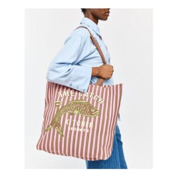 Pink & Brown Striped Fish Fabric Tote Shopper Bag