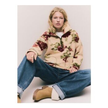 Pink Floral Print Soft Touch Cosy Teddy Borg Quarter Zip Fleece