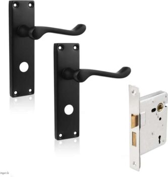 4 Pack Internal Door Handle Lock Set Mortice Latch with Backplate – Matte Black Privacy Handle65mm Latch