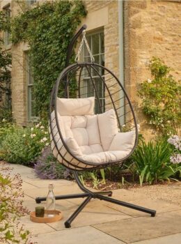 Chair and frame measures W94cm x D106cm x H192cm Corrosion-resistant galvanised steel frames Weather resistant fabric cushions Assembly required
