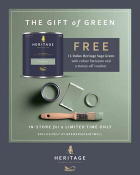 Find your nearest Brewers store and claim your FREE Dulux Heritage Sage Green 1L tin today