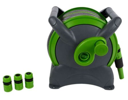 With 20 metres of hose as well as connectors and adapters, this Compact Hose Reel is perfect for watering plants all around your garden or for filling up swimming pools. Attach it either your outdoor tap or to a kitchen tap and feed the hose outsides, its compact and lightweight design makes it easy to manoeuvre while the adapters aid in versatility.