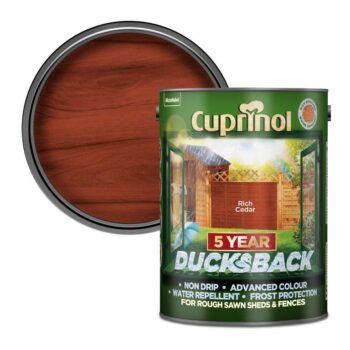Cuprinol Ducksback Shed & Fence Paint 5L – Rich Cedar / Harvest Brown / Black / Forest Green