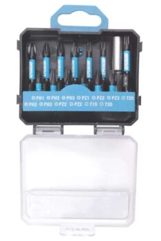 Impact torsion bits specially designed for use with impact drivers. High quality, S2 alloy steel with optimised heat-treated construction for high performance. Featuring an extended torsion zone with optimal flexibility for reduced risk of damage and added durability. Suitable for power screwdrivers with impact mode. Supplied in a handy storage case.