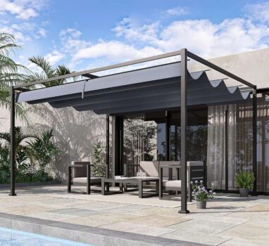 Retractable roof: Allow sun in, and create shade at a specific spot when needed – pergola with retractable roof shields you whenever you want. A beautiful and functional piece.