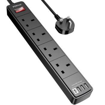 The POWSAF Extension Lead, available for £12.47 on Amazon, is a versatile power strip designed to meet the demands of modern life. It features a combination of 4 USB slots and 4 AC outlets, allowing users to power and charge up to eight devices simultaneously from a single wall socket. This makes it an ideal solution for environments such as college dorms, cruise ships, offices, and homes where multiple devices are in use.
