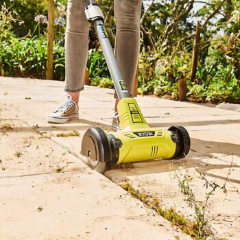 As part of the Ryobi ONE system of over 200 cordless tools for the home, garden, automotive, crafting and much more, the Ryobi 18V ONE RY18PCA-0 Patio Cleaner with wire brush is perfect for clearing weeds and grass from between bricks, paving slabs and so much moreFed-up of bending down or kneeling to clean weeds from your patio The ONE Patio Cleaner with wire brush spins at 1350rpm to power through weeds, grass and moss from your patio, block paving, driveway and bricked areas. Its innovative design features a telescoping height adjustment handle which means upright cleaning for any user. The two handle design ensures it is ergonomic and easy to use and the wire brush guard protects the user from debris. Incorporating a tool-less brush changing mechanism means it is quick and easy to switch between different types of cleaning brush, even with gloves on. Furthermore, the handle design allows for quick and easy storage, taking up less space in your shed or garage.If you have softer surfaces (e.g. sandstone or tile) then youll need the nylon brush (RAC818) – sold separately. Using a 5.0Ah battery (not included), the Ryobi RY18PCA-0 can run for up to 80 minutes on a single charge.This is a bare tool – battery and charger are not included.