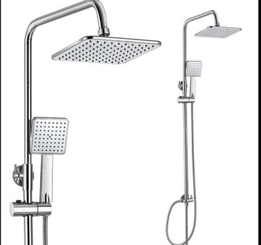 This complete set includes an 8-inch square rainfall shower head, a 4-inch handheld shower, a practical shower shelf, a 150cm flexible shower hose, and an 80cm metal connection hose. Designed in sleek chrome finish, it adds a polished and contemporary touch to any shower space.