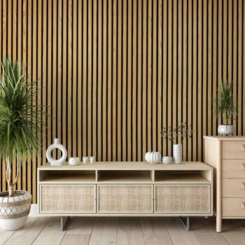 The STRIVO Acoustic Slat Panel – Natural Ash is a wood slat panel designed to enhance both the look and sound quality of any room.
