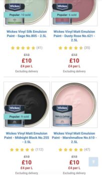 Wickes Vinyl Silk / Matt Emulsion Paints 2.5L ( loads of shades ) Free C&C