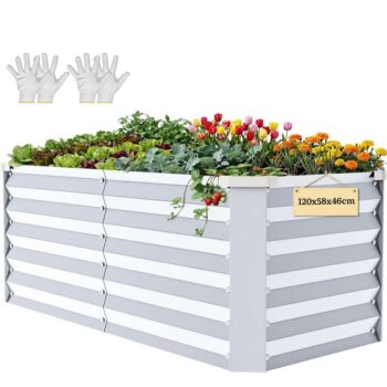 YITAHOME Raised Beds for Garden 120 58 46cm,Galvanised Steel Plate Metal Raised bed, planters outdoor with Safety Edging for Garden with Support Rod & Gloves for Vegetables Flowers Fruit(Silvery)