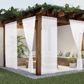 youleyar Outdoor Sheer Curtains Patio Waterproof 2 Panels Linen Look Rod Pocket Indoor Voile Living Room Bedroom Porch Pergola Cabana Gazebo, 52×84 Inch, White