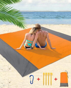 SUPER LARGE SIZE BEACH BLANKET : Large beach blanket sandproof 200cm x 210cm (83 X 79inches) unfolding oversize picnic mat, providing ample space for 4 persons lying down or 7 persons sitting with extra room for food, drinks, and more. This beach mat includes 4 fixed nails, a safety carabiner and a carry bag.