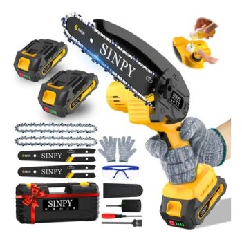 DEAL STACK – SINPY 6-Inch Cordless Mini Chainsaw with 2 Batteries & Chains