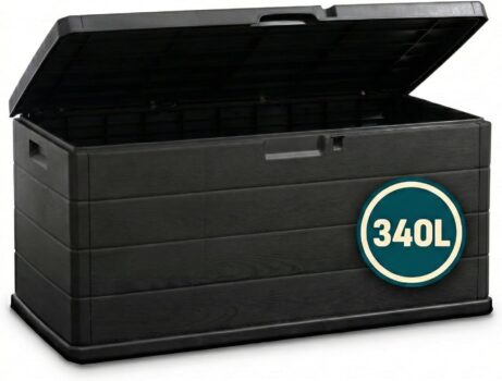 Large Garden Storage Box 340L Plastic Outdoor Cushion Storage Chest with Lockable Lid Water Resistant Deck Box for Parcels, Tools & Toys, Grey
