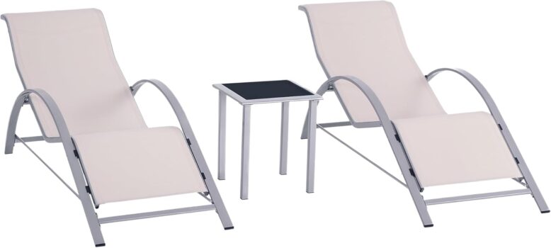 Three-piece set: Comes with two reclining garden lounge chairs and a small table. Room to relax with someone outdoors.