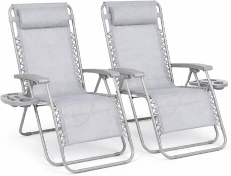 Straame Zero Gravity Chairs Set of 2,Folding Reclining Garden Chairs, Textilene Outdoor Chair, Lockable 170 Sun Loungers for Garden, Steel Frame, 150 kg Max Load(Classic, Silver Grey)