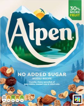 The Alpen Muesli No Added Sugar 550g is a breakfast cereal made with wholegrain wheat flakes and rolled oats.