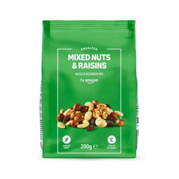 Raisins (40%) (Raisins, Sunflower Oil, Cottonseed Oil), Blanched ALMONDS (20%), HAZELNUTS (20%), WALNUTS (10%), CASHEW NUTS (10%). For allergens, see ingredients in CAPITALS. Not suitable for other Nut, Peanut, Sesame and Soya allergy sufferers and Coeliacs due to manufacturing methods.
