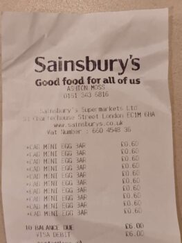 Cadbury Mini Eggs 110g Chocolate Bar 60p Sainsburys Garage Ashton Moss, Ashton-Under-Lyne. Around 4 full boxes left. Apparently theyre 60p at any Sainsburys with stock. Out of stock online so instore only.