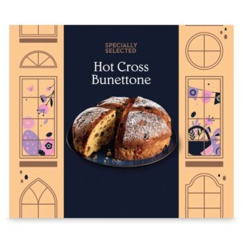 Aldis take on the hot cross bun mixed with panettone. Now being reduced after Easter.