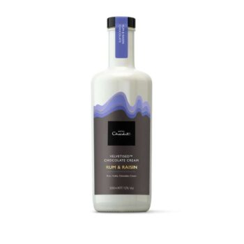 A 500ml bottle of Hotel Chocolats Rum & Raisin Velvetised Cream chocolate alcohol.