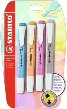 STABILO swing cool Pastel – Highlighter – Pack of 4 – Dusty Grey, Frozen Fuchsia, Breezy Blue, Pale Orange