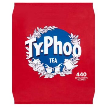 Get your brew on with Typhoo 440 Teabags This 1kg bag of Britains beloved tea is Rainforest Alliance Certified, ensuring every cuppa is as good for the planet as it is for your taste buds. Cheers to a proper tea time
