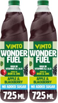 Water, Mixed Fruit and Vegetable Juices from Concentrate 30% (Apple, Blackberry, Beetroot), Acid (Citric Acid), Flavourings, Colouring Food (Concentrates of, Carrot, Hibiscus), Vitamin C, Acidity Regulator (Sodium Citrate), Sweeteners (Sucralose, Acesulfame K), Preservatives (Potassium Sorbate, Sodium Benzoate), Niacin (Vitamin B3), Iron, Pantothenic Acid (Vitamin B5), Zinc, Pyridoxine (Vitamin B6), Biotin (Vitamin B7), Vitamin D
