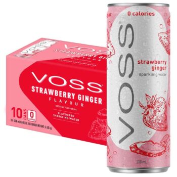 100% RECYCLABLE This pack of 10 x 330ml VOSS Strawberry Ginger flavoured sparkling water is packaged using premium aluminium cans, always endlessly recyclable. The fridge-pack size is designed to effortlessly fit directly into your fridge.