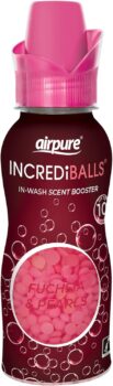 As part of the Airpure family of products, INCREDiBALLS In-Wash Scent Booster offers a convenient way to keep your home and office smelling fresh. Decorate the air by adding this scent booster to your laundry the next time you wash household fabrics. The canister contains enough scent booster for 10 loads of wash. This product has our 100% satisfaction guarantee. If youre not entirely pleased with your purchase, well gladly provide a replacement or refund.