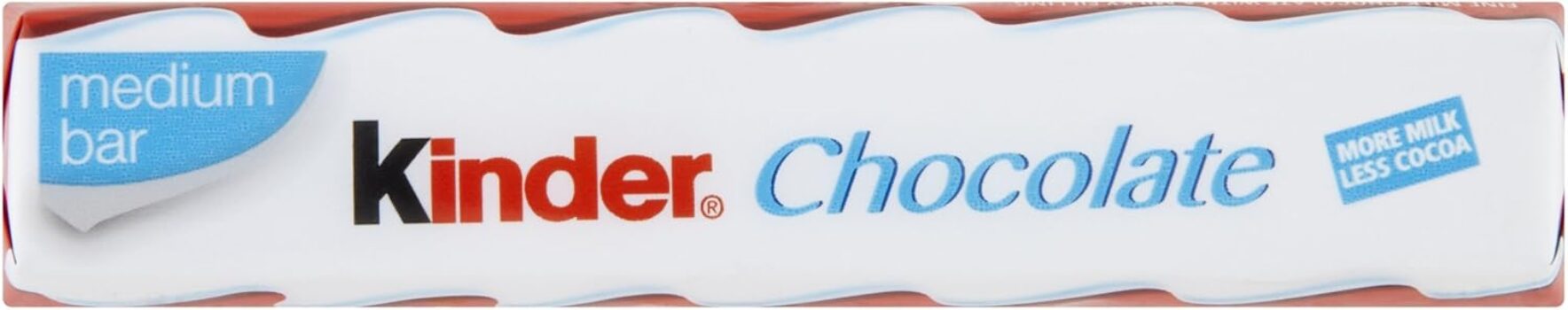 Each bar of Kinder Chocolate contains a delicious milky filling covered with a fine milk chocolate coating. Ingredients Fine Milk Chocolate 40% (Sugar, Milk Powder, Cocoa Butter, Cocoa Mass, Emulsifier: Lecithins (Soya), Vanillin), Sugar, Skimmed Milk Powder, Palm Oil, Concentrated Butter, Emulsifier: Lecithins (Soya), Vanillin, Total Milk Constituents: 33% – Total Cocoa Constituents: 13% Milk Chocolate Contains: Coca Solids 32% Minimum, Milk Solids 22.5% Minimum Directions Eat as is, one bar at