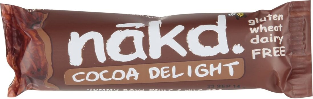 Nakd cocoa delight bars contain 100% natural ingredients with no added sugar or syrups, it only contains naturally occurring sugars. It is cold-pressed, never baked. It is gluten, wheat and dairy free. It is certified by Kosher and suitable for vegetarians and vegans. Its shelf life is 186 days.