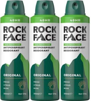 BUILT FOR ACTIVE LIFESTYLES – Rock Face anti-perspirant deodorant is the perfect solution for men who are always on the go. With its specially formulated ingredients, it effectively protects against sweat and odour for up to 48 hours, keeping you feeling fresh and confident throughout the day. Its long-lasting protection is ideal for active lifestyles, whether youre hitting the gym, playing sports, or just going about your daily routine.FAST ABSORBING – Leaving no stains, our Antiperspirant Deodorant leaves you feeling fresh and ready to take on your day with up to 48 hour of protection.PIONEERING FORMULA – Hard-working and great-smelling pioneering formulas, backed by science. All our products are vegan-friendly, never tested on animals and free from micro-beads and parabens.BUILT FOR ACTIVE LIFESTYLES – Designed for those with an active lifestyle in mind, this antiperspirant is gentle on the skin whilst protecting from odour for up to 48 hours. It is vegan-friendly and free from parabens.ROCK FACE – As a proudly independent British Brand and a team that has spent a lifetime in the industry, we wanted to deliver the highest quality formulas for men, at the most affordable price. There are real faces behind this brand.NEW & IMPROVED spray nozzle. We heard you loud and clear and weve upgraded our deodorant cap with a stronger, more reliable nozzle that delivers an even mist every single time. No more clogs, no more surprises just an effortless spray.