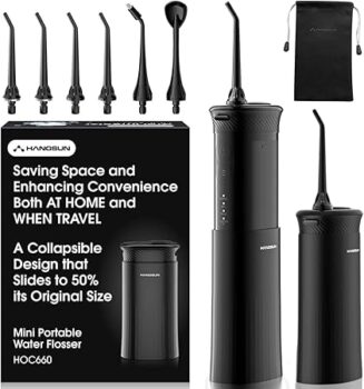 Powerful Battery Capacity and Superior Long Life: To increase the usage time when traveling or on business trips, hangsun upgraded the battery to a 1400mAh high-capacity battery, which can extend the usage time to 30 days on a single full charge. The package comes with a USB cable Type C (without adapter), which is suitable for various charging devices such as mobile power banks, computers, laptops, etc. Hangsun portable water flosser is an ideal travel companion.