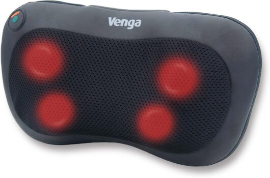 SHIATSU MASSAGE PILLOW for a comforting massage experience. The infrared heating generates a soothing heat that will help loosen and comfort tight muscles. With the included car plug accessory and its sturdy frame, you can use it during long car rides Experience a Japanese shiatsu massage on the go 4 MASSAGE NODES that will reach those seemingly unreachable muscles in your neck and on your back. The auto-reverse function reverses the rotating direction of the massage nodes every minute and the