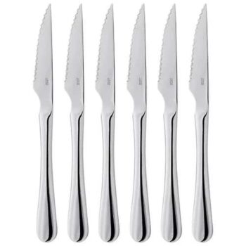 The Judge Windsor Set Of Six Steak Knives offers a perfect blend of style and function, ensuring a comfortable dining experience while cutting steak.