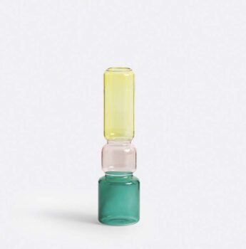 This vase boasts an art-deco influence and contemporary re-interpretation of the soliflore. The Oryo vase with tiers and rounded corners plays with colours to highlight cut flowers or branches.