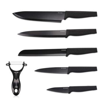INCLUDES: The kitchen prep set includes 5 all-black knives with stainless steel blades. The 5 knives also come with 1 ceramic blade swivel head peeler.
