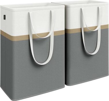 These 2 laundry hampers can be easily folded when not in use. The short handles are perfect for lifting, and the long handles are ideal for carrying over the shoulder, making transportation a breeze