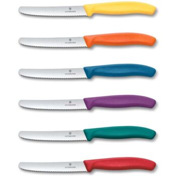 Victorinox Swiss Classic, Breakfast Knife, Bread roll Knife, Sharp Blade, Serrated Edge, 11 cm, Plastic Handle, Stainless Steel, Set of 6