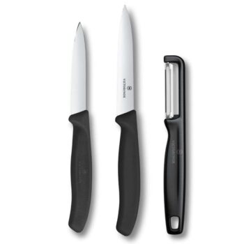 Victorinox Swiss Classic paring Knife Set with Peeler, paring Knife and Tomato Knife, 3-piece Set, Extra Sharp Blade, Black