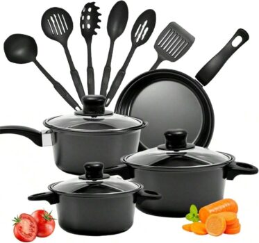 13-Piece Non-Stick Cookware Set with Glass Lids – Durable Iron Pots and Pans – Please Confirm the Size Before Ordering.