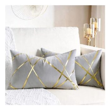 2-Pack Velvet Cushion Covers 12×20 Grey Gold Geometric Lines
