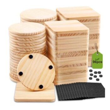 96 Pcs Blank 4-Inch Wood Coasters with Non-Slip Pad