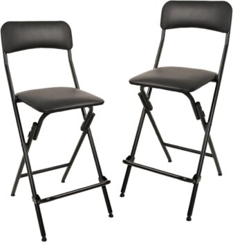 Amazon Basics Folding Stool with Footrest, 136.1 kg Weight Capacity, 61 cm Height, Black, Set of 2