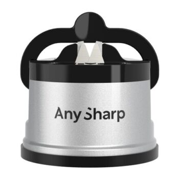 AnySharp Knife Sharpener, PowerGrip Suction, Sharpens All Knives, Silver