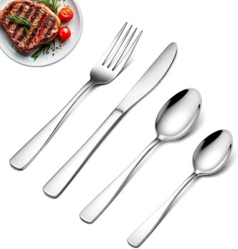 Complete Cutlery Set for 4 People Our 16 piece cutlery set includes 4 dinner knives, 4 dinner forks, 4 dinner spoons, and 4 teaspoons. This comprehensive tableware collection eliminates last-minute scrambling, perfectly serving family feasts or camping trips. Our cutlery set elevates the tablewith its square handle design, flat handle design that exudes simplicity and elegance. The sleek silhouette is not only aesthetically pleasing, but also ensures that the cutlery set is eff