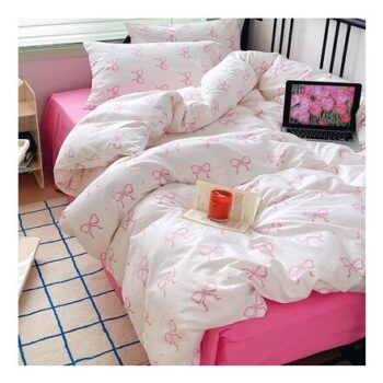 Covebett Pink Bow Duvet Cover King Set with Zipper