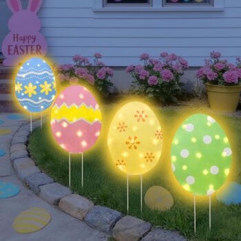 Eambrite Easter Decorations Outdoor Colourful Eggs, Easter Egg Pathway Lights for Lawn Garden Yard Signs, Lighted Eggs Decorations with Timer for Home Table Party Decor